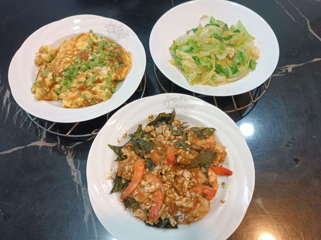 金沙鹹蛋蝦的精髓在「鹹蛋黃要炒到起沙」。當蛋黃油脂被小火逼出、呈現細細的沙狀顆粒時,香氣會瞬間放大,包裹在蝦子表面就像裹上一層金黃外衣。吃起來鹹香濃郁,但只要比例抓對,完全不會死鹹,反而更襯托蝦肉的鮮甜。傳統作法常見油炸,但在家用「香煎」更方便也更不油。重點是蝦子要先擦乾、鍋要熱、煎到表面略帶焦香,再快速拌入金沙醬。這樣做出來的金沙鹹蛋蝦一樣有口感、有香氣,還能少用很多油,平日家常或宴客都很適合。